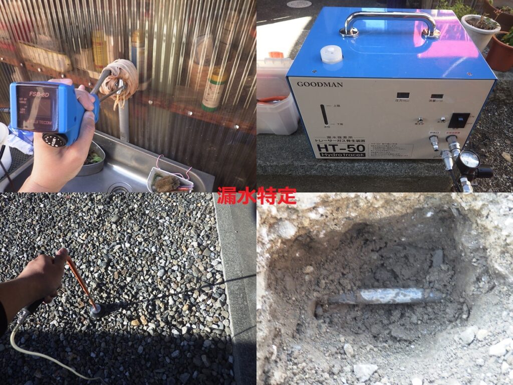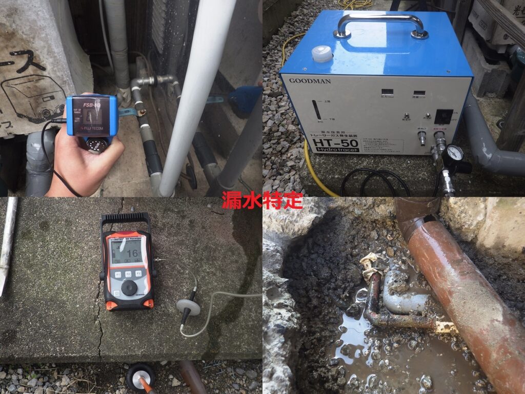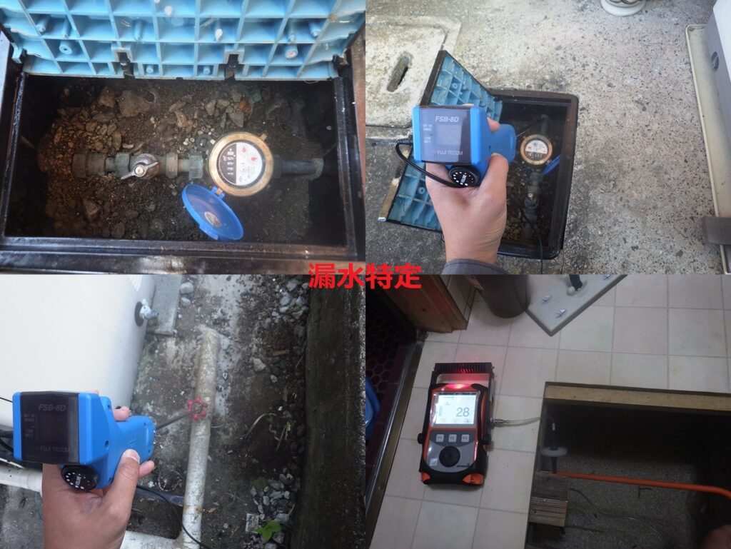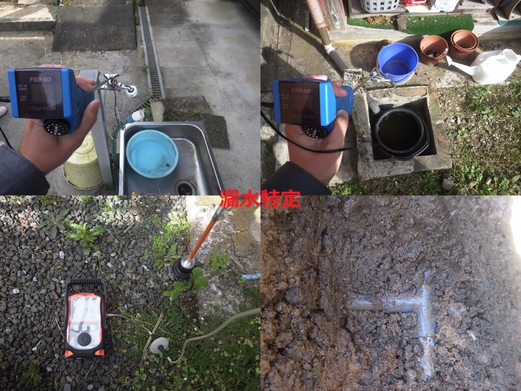 戸建住宅の漏水調査 電子音聴調査、TG工法より調査開始。 屋外、屋内より反応を検知。 漏水個所を特定しました。