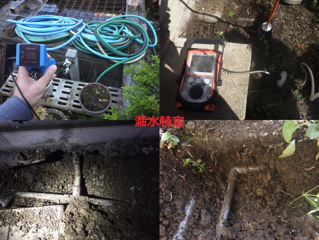 戸建住宅の漏水調査 電子音聴調査、TG工法より調査開始。 屋外より反応を検知。 漏水個所を特定しました。