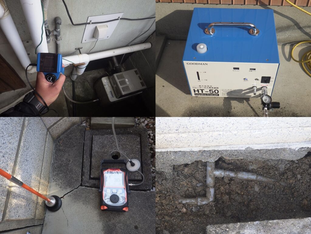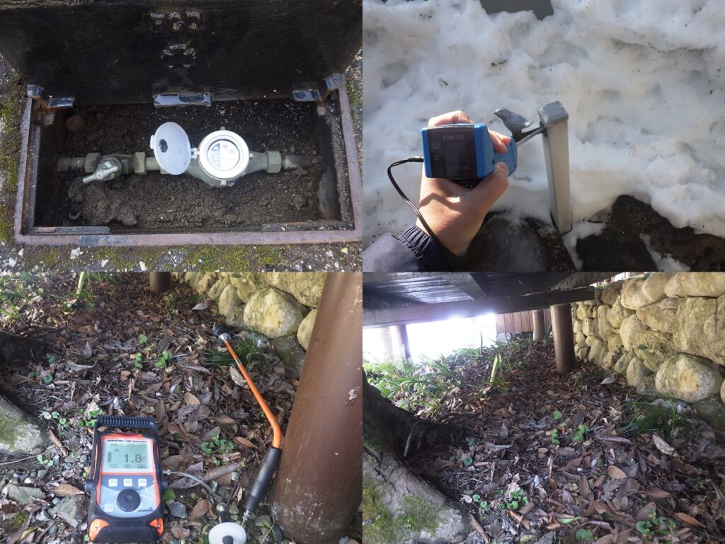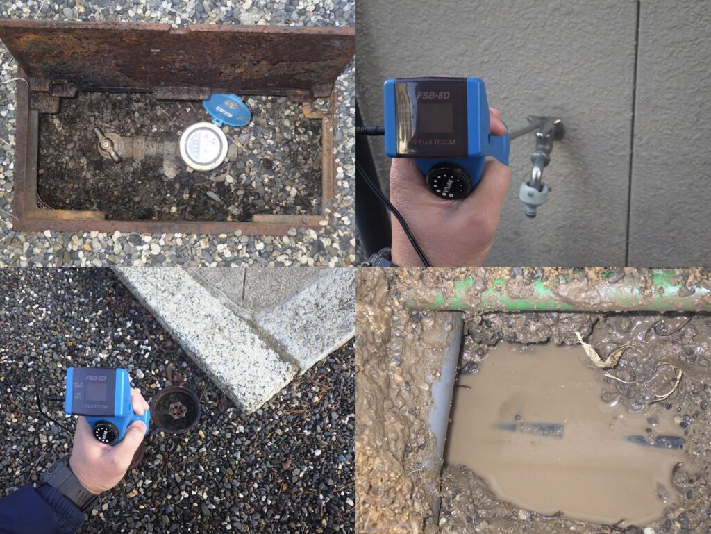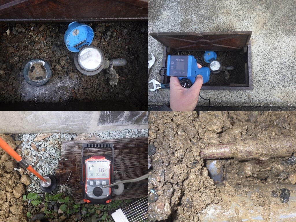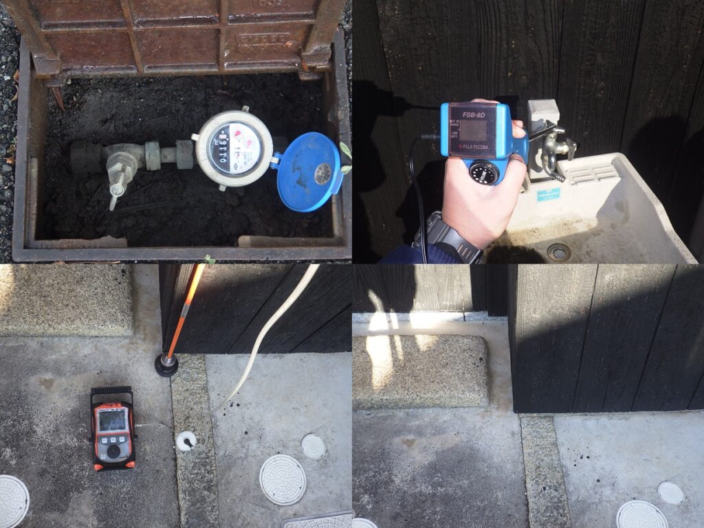 戸建住宅の漏水調査 電子音聴調査、TG工法より調査開始。 屋外より反応を検知。 漏水個所を特定しました。