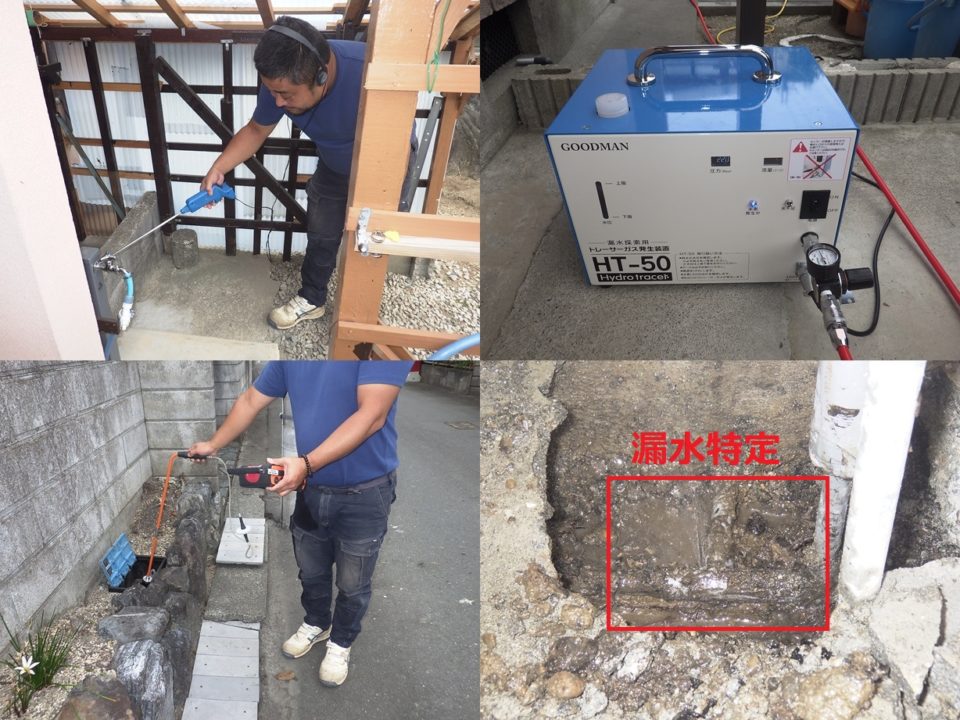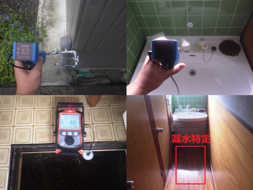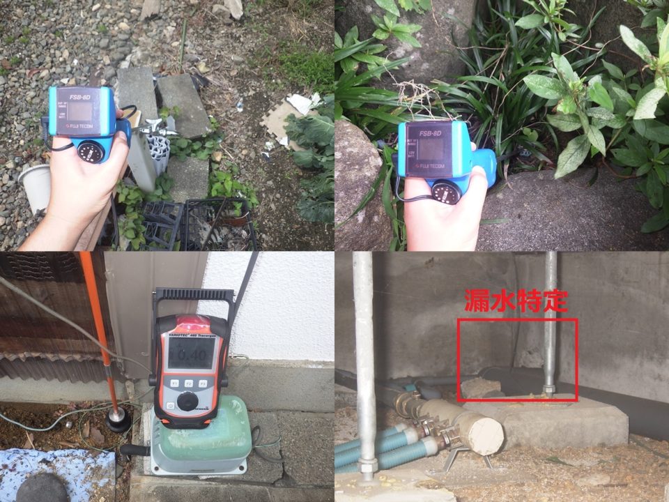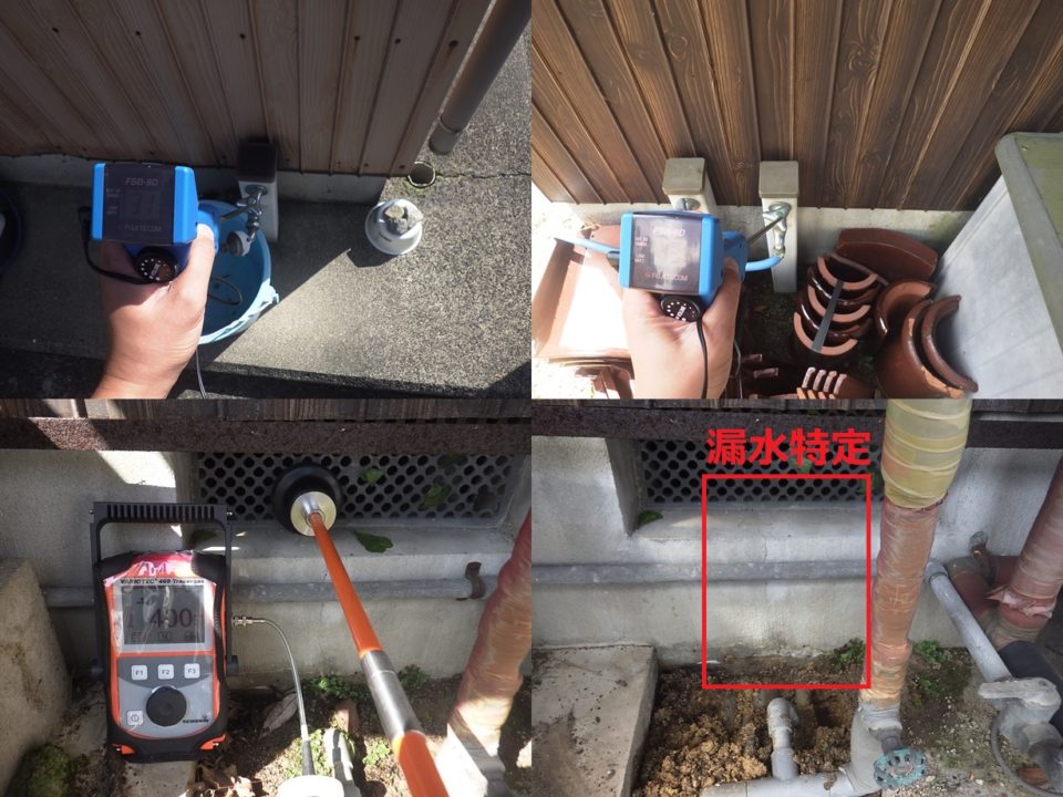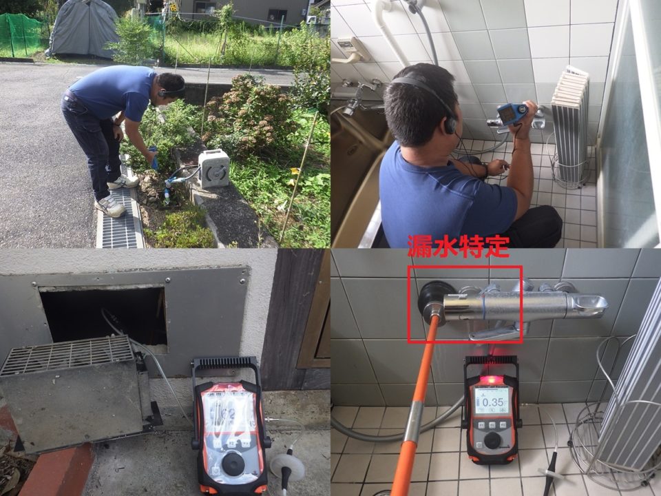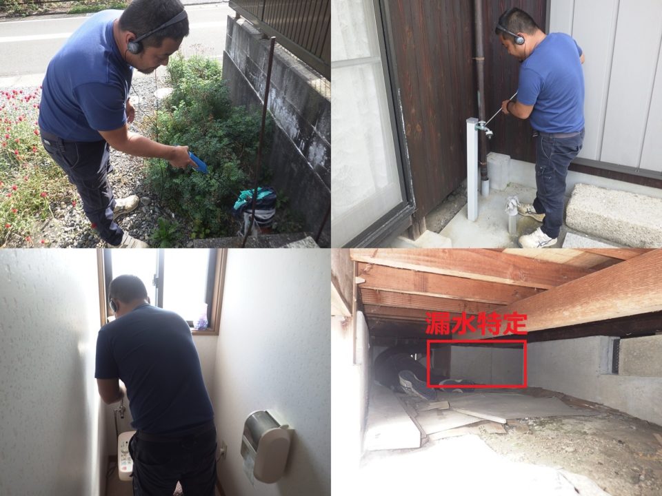 滋賀県高島市Y様邸 一般住宅 戸建住宅の漏水調査 電子音聴調査 TG工法 広い敷地での漏水調査でした。 トレーサーガス調査にて屋内床下から反応有りました。 正確な位置を特定するため床下に潜り調査実施。 結果、トイレ手洗い配管より特定しました。