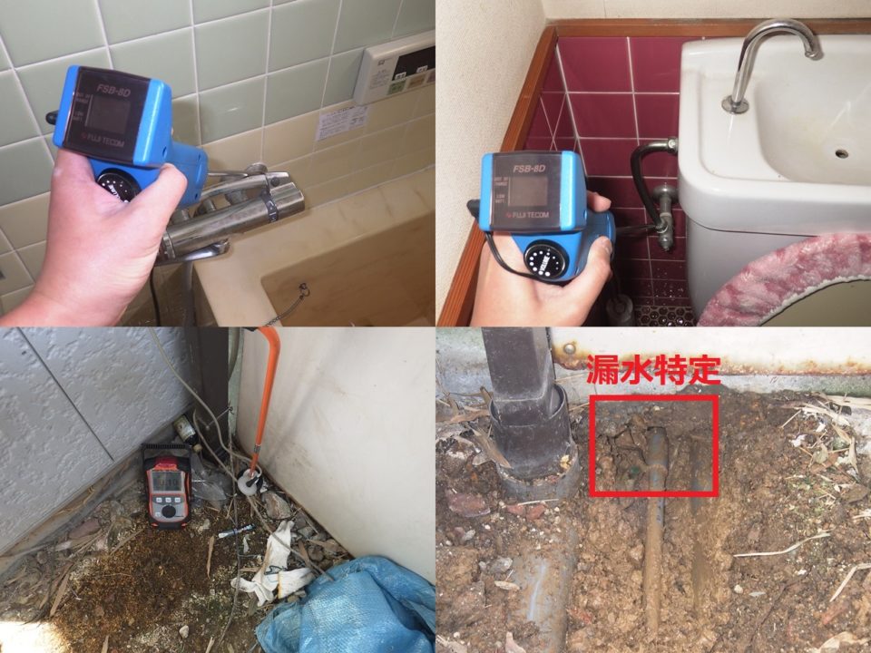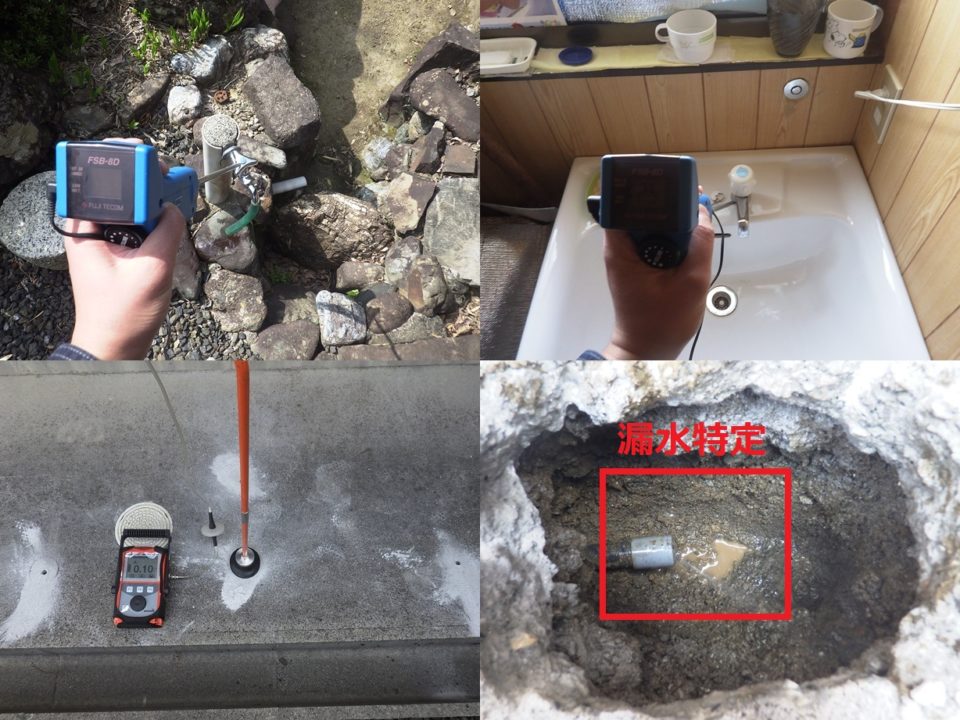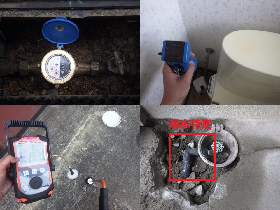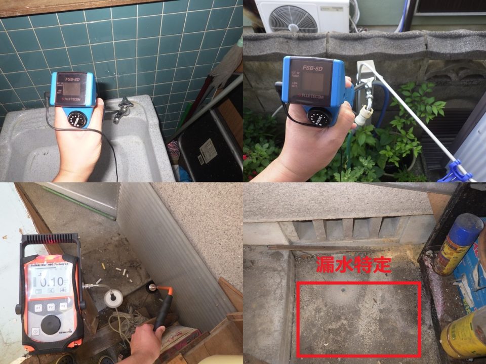 戸建住宅の漏水調査 漏水量 微小 電子音聴調査 TG工法 コンクリートが多く、発見まで時間を要すると思いましたが ガスを入れてすぐに反応を検知し、漏水箇所を特定しました。