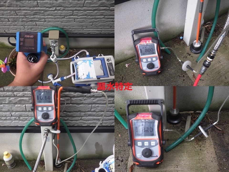 戸建住宅での漏水調査 電子音聴調査 TG調査 広い敷地での漏水調査でした。 わんちゃんの鳴き声で音聴が難しかったです。 トレーサーガスを注入し、反応をすぐに検知。 漏水箇所を特定致しました。