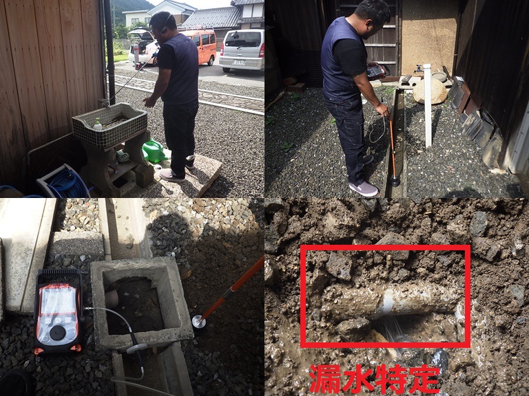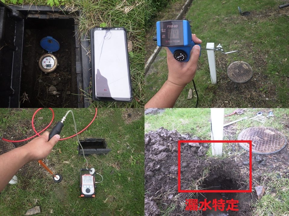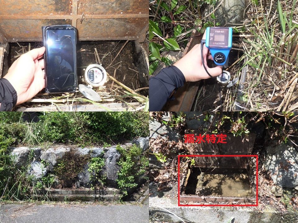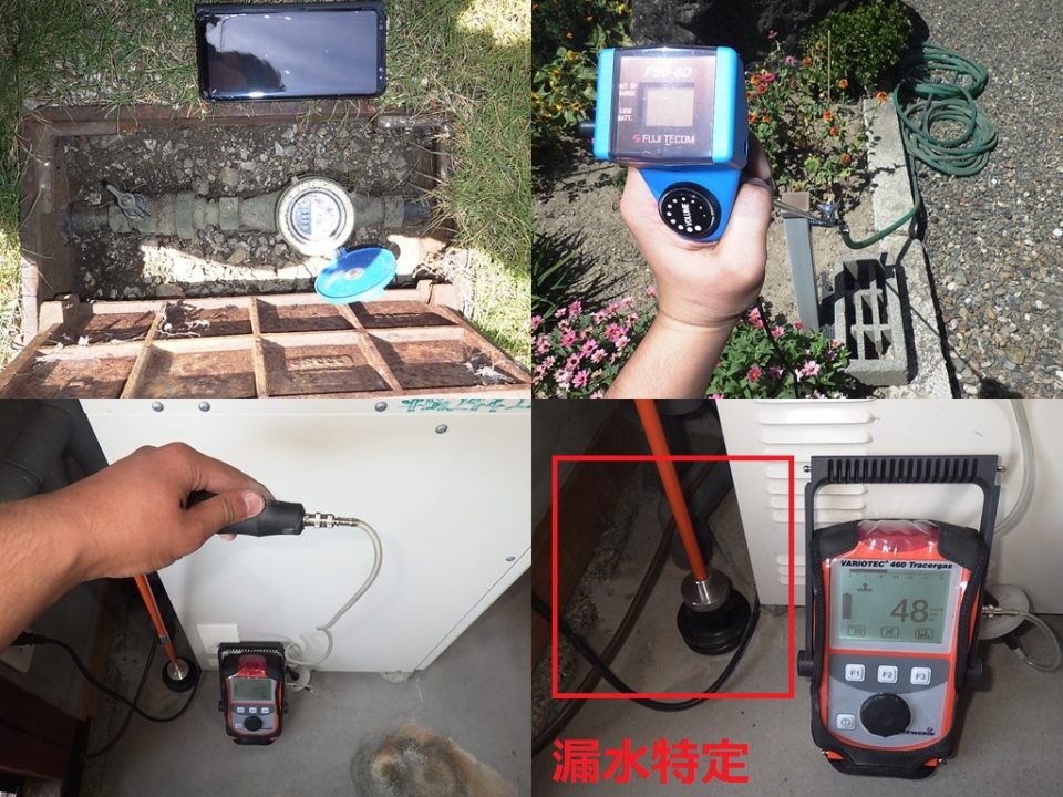 漏水量0.6L/分。 屋外立水栓よりトレーサーガスを検知。 漏水箇所を特定致しました。