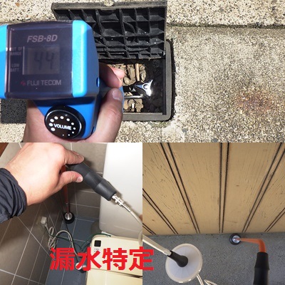 漏水量0.2L/分。 建屋外周は全面コンクリートでした。 トレーサーガス式漏水調査実施より ピンポイント漏水特定しました。