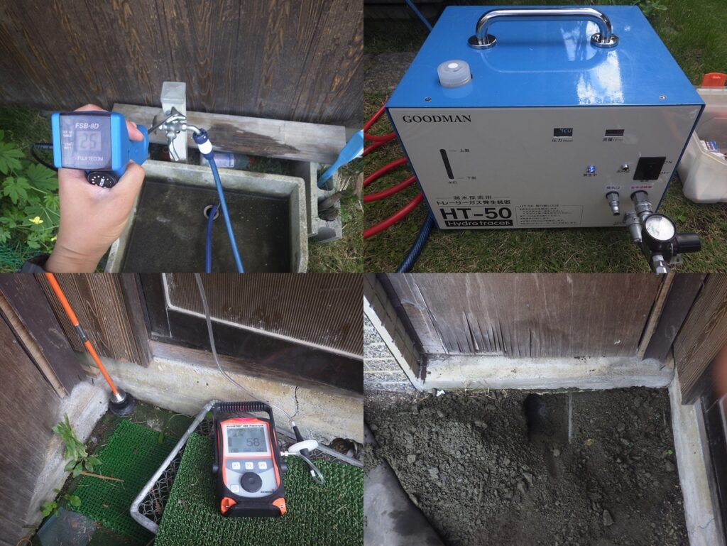 戸建住宅の漏水調査 電子音聴調査、TG工法より調査開始。 屋内床下より反応を検知。 漏水個所を特定しました。