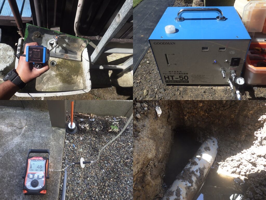 戸建住宅の漏水調査 電子音聴調査、TG工法より調査開始。 屋外より反応を検知し、漏水個所を特定しました。