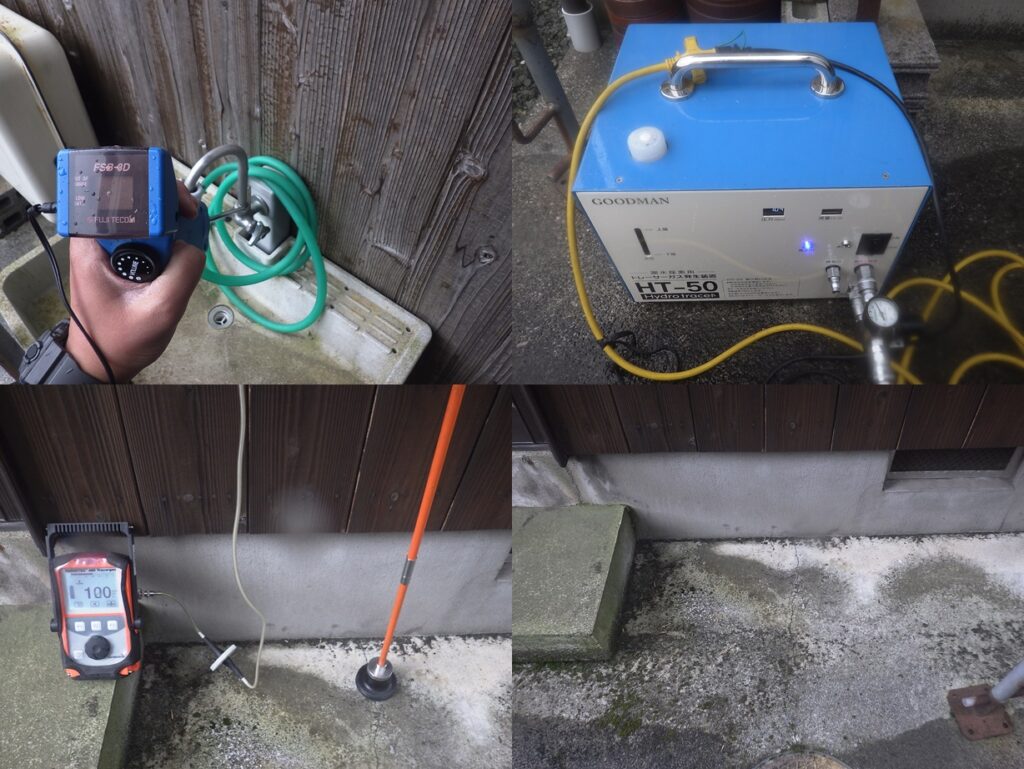 滋賀県長浜市M様邸 一般住宅 戸建住宅の漏水調査 TG工法調査 コンクリート床面下は空隙が多いとガスが 浮遊し調査を妨げる場合があります。 弊社ではTG工法調査を得意としますが、 特定間違いが無きよう複合調査で対応します。 今回もピンポイントにて漏水特定しました。