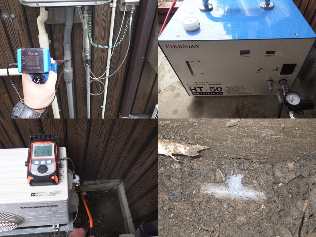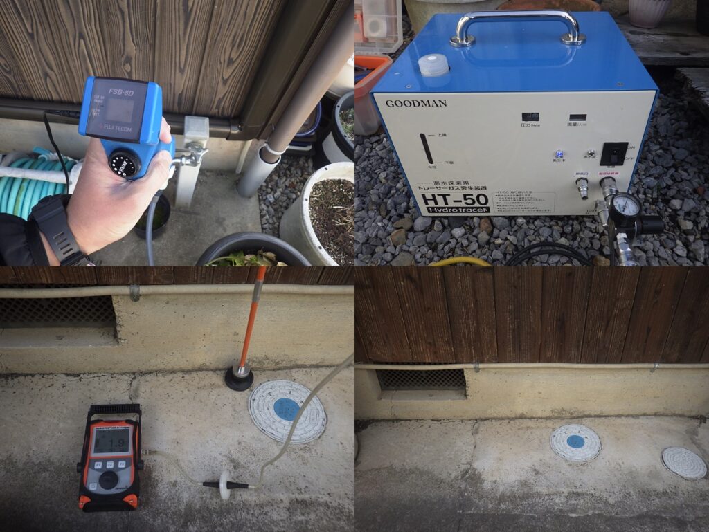 戸建住宅の漏水調査 電子音聴調査、TG工法より探索開始。 床下埋設管より反応を検知。 漏水個所を特定しました。