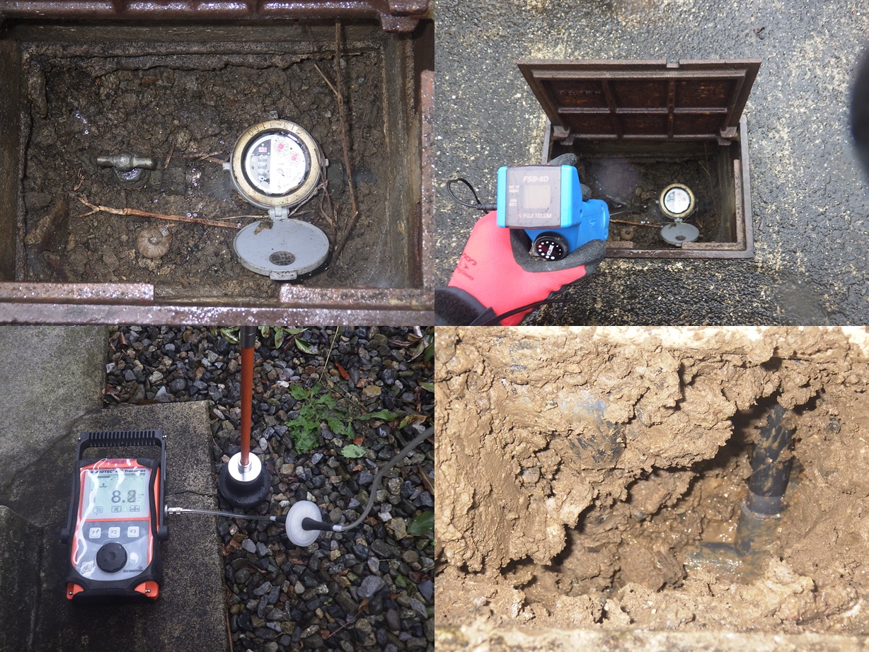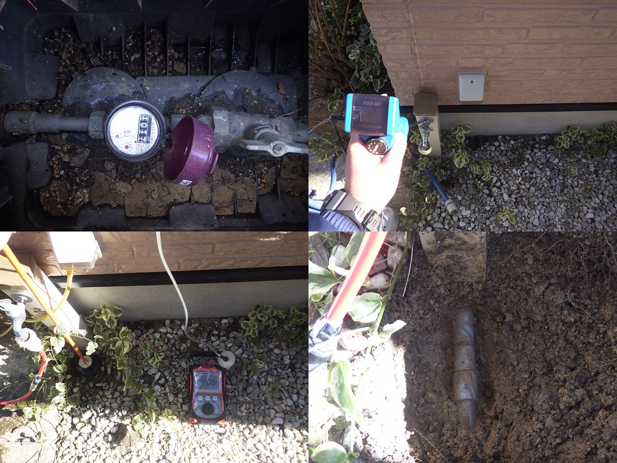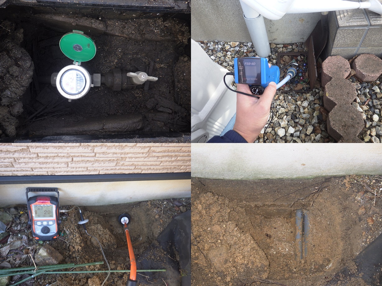 戸建住宅の漏水調査 電子音聴調査、TG工法より調査開始。 屋外より反応を検知。 漏水個所を特定しました。