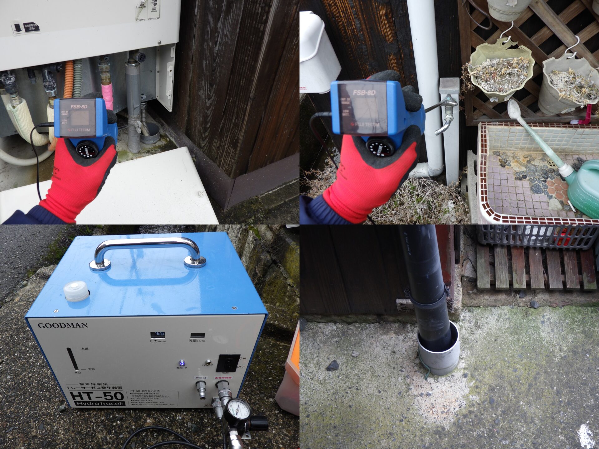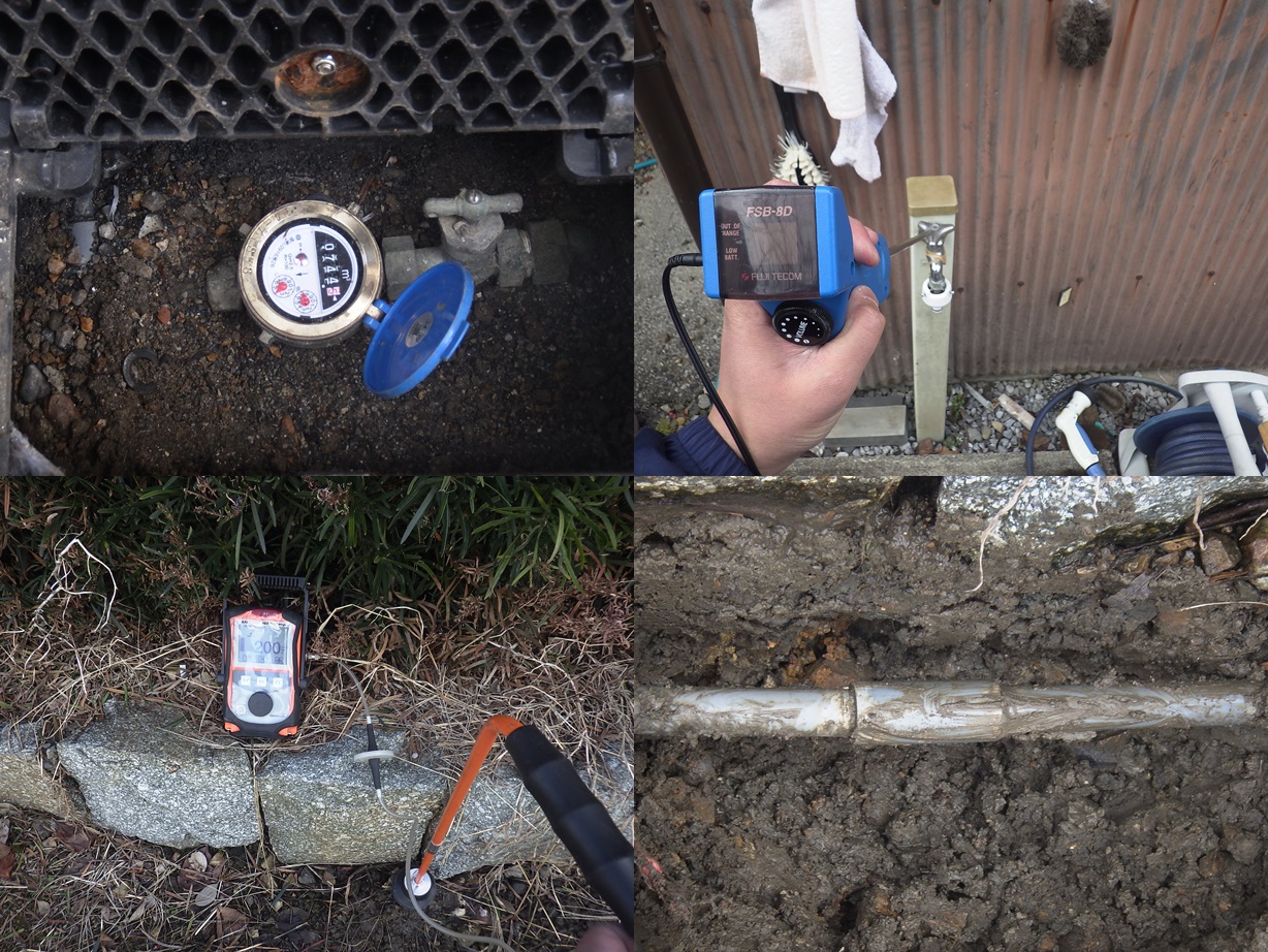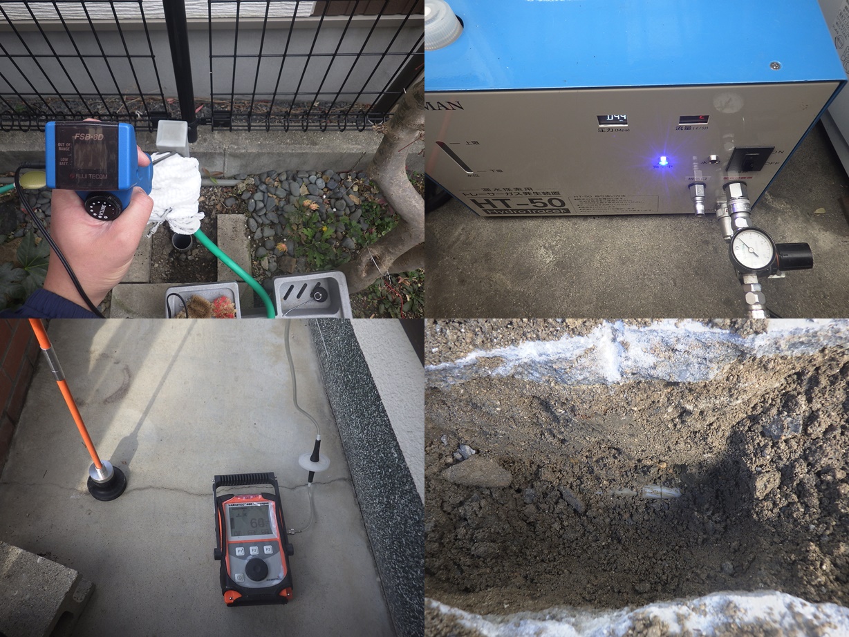戸建住宅の漏水調査 電子音聴調査、TG工法より調査開始。 屋外より反応を検知。 漏水個所を特定しました。
